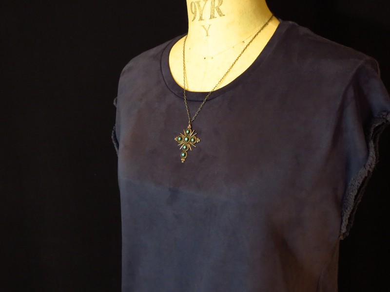 また、付属のシルバーチェーンは新しいものですが、独自にアンティーク加工を施しておりビンテージ作品によく馴染む表情になっております。