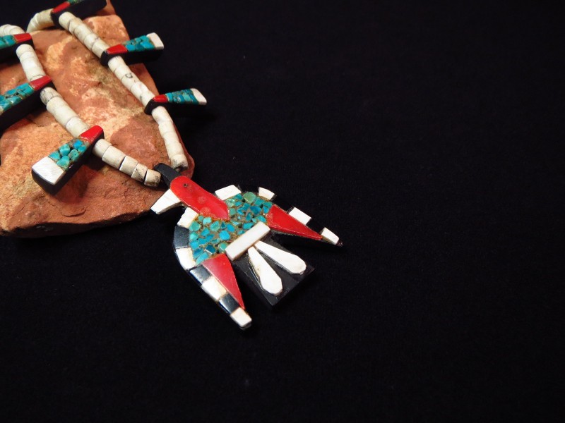 【Kewa】キワ/【Santo Domingo】サントドミンゴのアンティーク作品、素朴で可愛い印象のサンダーバードが印象的なアンティーク/ビンテージネックレスです。 通称【Battery Bird】バッテリーバード、【Depression Necklaces】デプレッションネックレス/大恐慌のネックレスともいわれる同部族の伝統的な作品です。