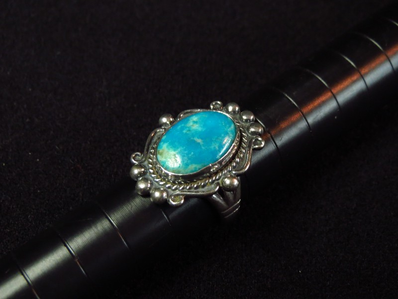 【Fred Harvey Style】フレッド・ハービースタイルや【Tourist Jewelry】ツーリストジュエリーと呼ばれる1910年代~1950年代当時、観光客向けに生産されたピースで、それらの中でも有名工房である【BELL TRADING POST】ベルトレーディングポスト社による綺麗なターコイズがセットされたビンテージリングです。