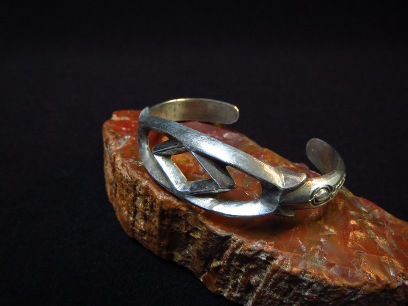 サンドキャスト(砂型鋳物)によるシルバーの成形は、ナバホジュエリーでも古典期と呼ばれる創成期からみられる技術の一つであり、長い歴史を持っています。そして、その当時から完成された技術/技法は現在に至るまで大きな変化なく受け継がれており、キャスト製法以外で作られた作品に比べて制作年代の判断を困難にしています。不確かな判断材料としては、量産化/パターン化されたデザインであるか、内側の処理・仕上げ、シルバー自体の質や表情、サンドキャストかトゥーファキャストによる成形であるか、などが目安となります。