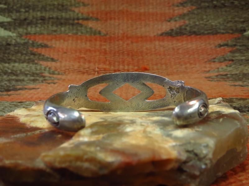 【NAVAJO】ナバホのアンティークジュエリー、サンドキャストで成形されたバンドにアンティーク作品らしいスタンプワークが施されたピース。古い作品特有の武骨で重厚な質感を持ち、シンプルなデザイン/造形ながら強さと迫力を感じさせるアンティーク/ビンテージバングルです。