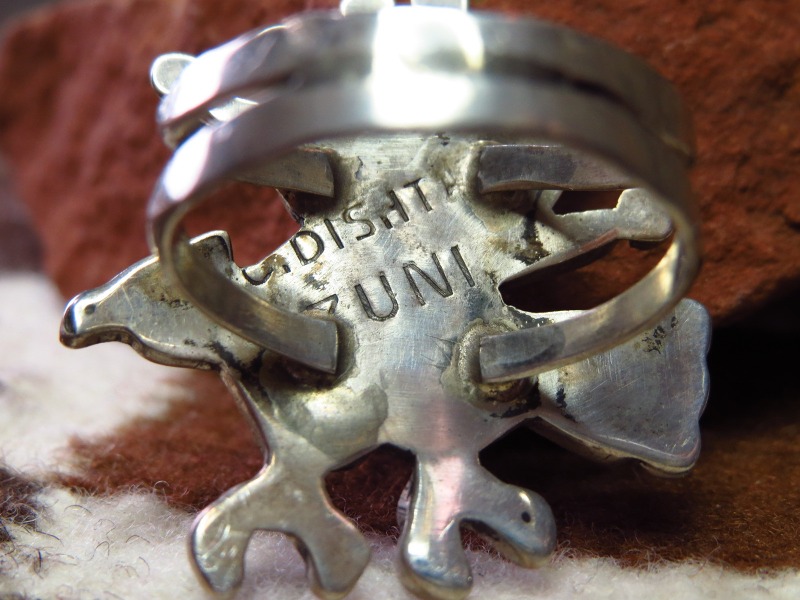 【Frank Dishta】フランク・ディシタは、1902年生まれで他の多くのズニ作家と同じく、C. G. Wallace Trading Postに所属していた作家の1人です。上記のように、当時まだまだナバホジュエリーとの差異が大きくなかった時代に、新しくズニのトラディショナルな技術や造形スタイルを築くことに貢献した人物であり、氏のオリジナリティーあるスタイルを生み出しました。1954年には亡くなっていますが、息子である【Virgil Dishta Sr.】を始め、多くの優秀な子孫を残し育てています。