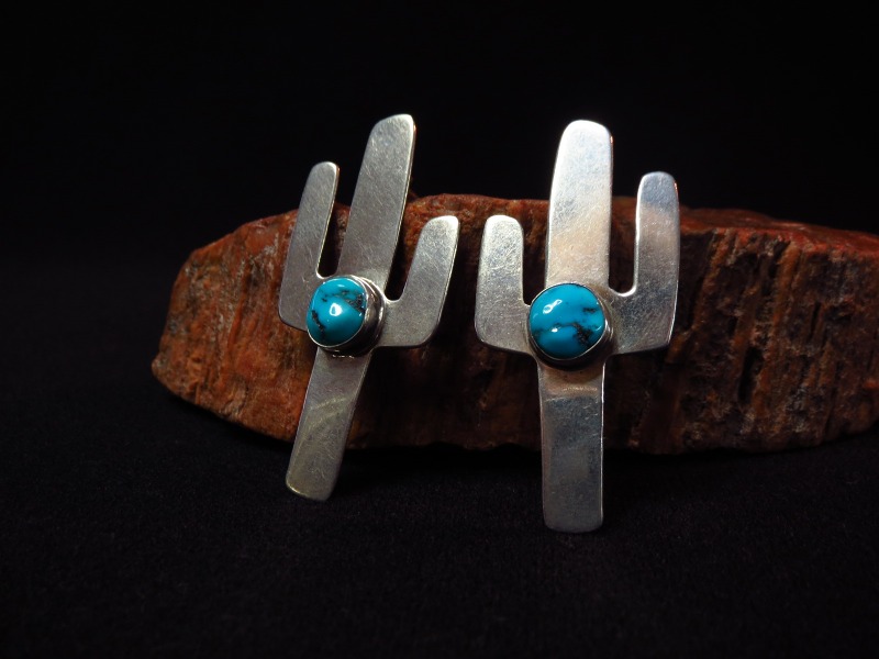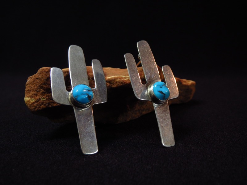 【NAVAJO】ナバホのオールドジュエリーと思われる、Cactus/サボテンシェイプにターコイズがセットされたポップでキャッチーなビンテージピアスです。