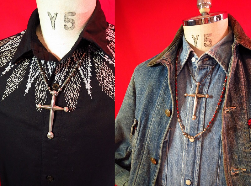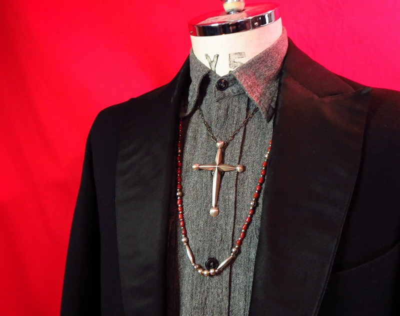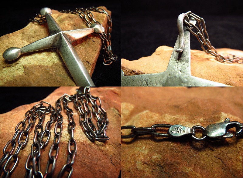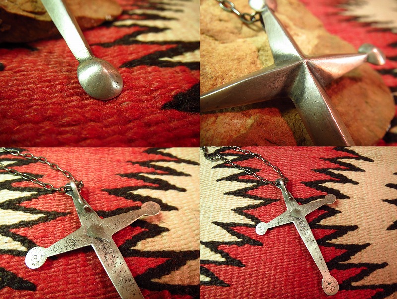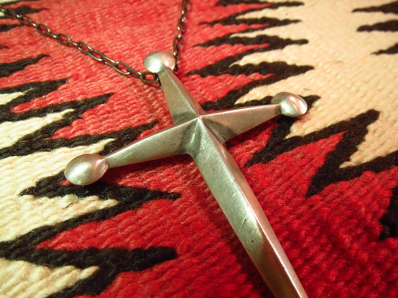 重厚で、大き目のクロスが存在感のあるピースで、先端に配されたシルバーボールがインディアンジュエリーの伝統的な造形を感じさせます。