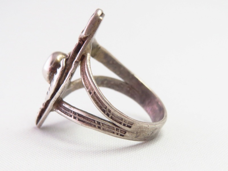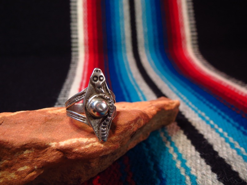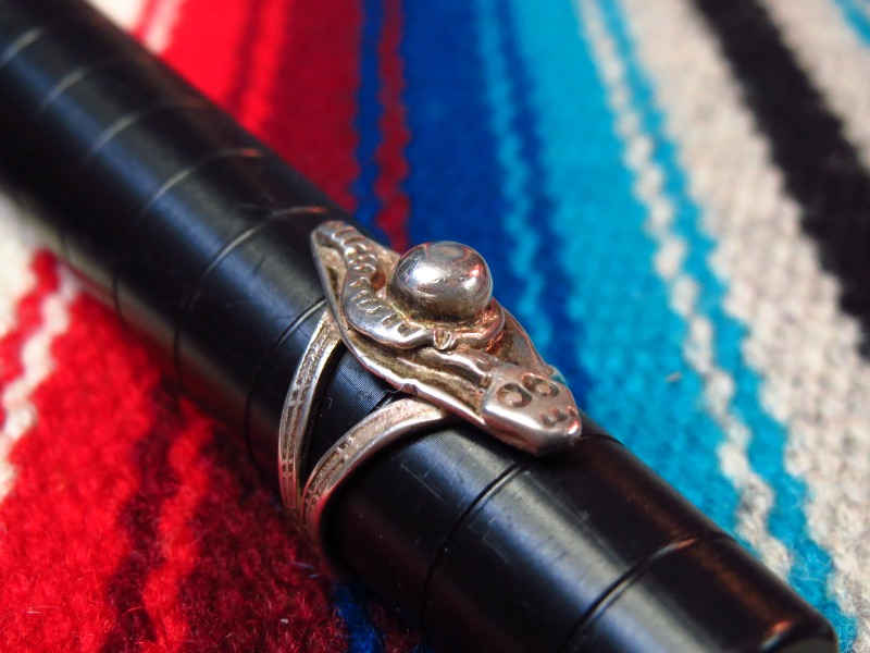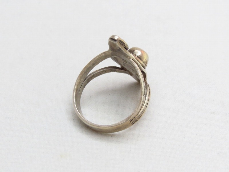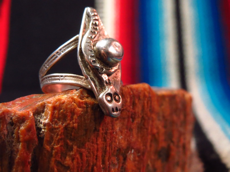 【PUEBLO】プエブロ/【NAVAJO】ナバホのアンティークジュエリー、ラトルスネーク/ガラガラ蛇とシルバービーズのアップリケが施された作品で、とても小さなサイズのビンテージ/アンティークリングです。