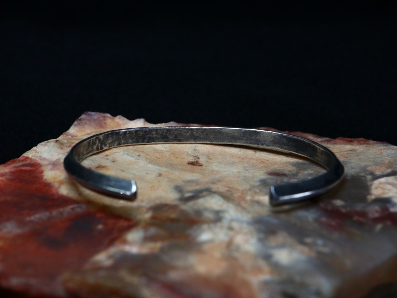 さらに、渋いシルバーの質感やターコイズの付かないシンプルな表情はさり気なく馴染みやすく、スタイリングや性別を問わずフィットする印象を持った作品です。その為、とても使いやすく長くご愛用いただける作品と思われます。