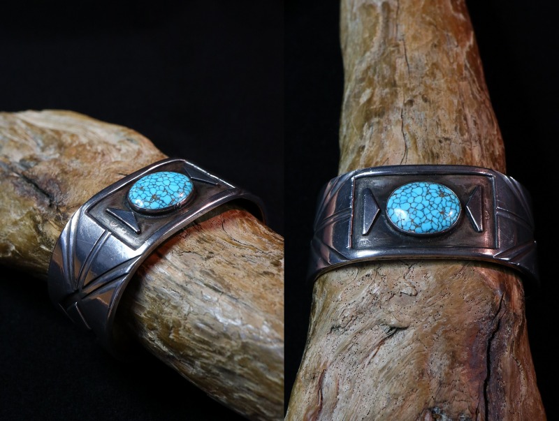そんな質の高いターコイズが作り上げる静かで悠然とした存在感や質実剛健なシルバーワークの完成度によって、長くご愛用いただけるバングルとなっており、トレジャーハントプライスなピースです。