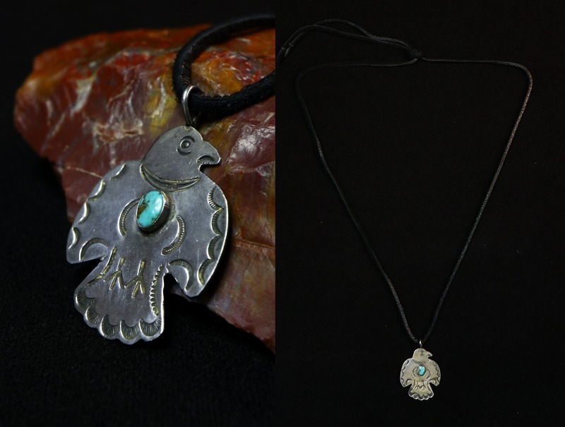 【NAVAJO】ナバホのアンティークジュエリーで、アメリカでも最も有名なトレーダーでありコレクタ―の一人である【Lynn Trusdell】(1938-2008)コレクションから放出された作品。アンティークインディアンジュエリーでありながらキャッチーでどこか可愛さのあるサンダーバードトップのアンティーク/ビンテージネックレスです。