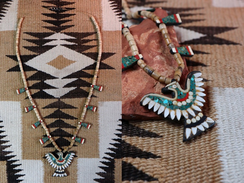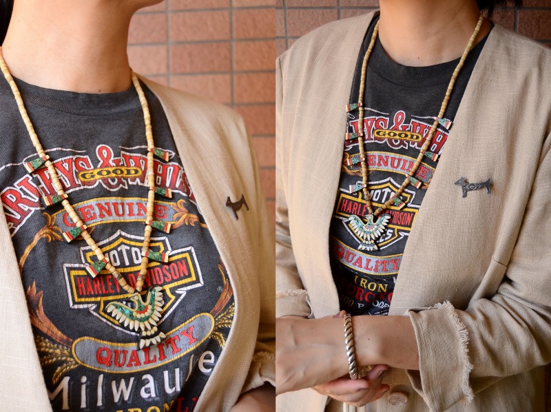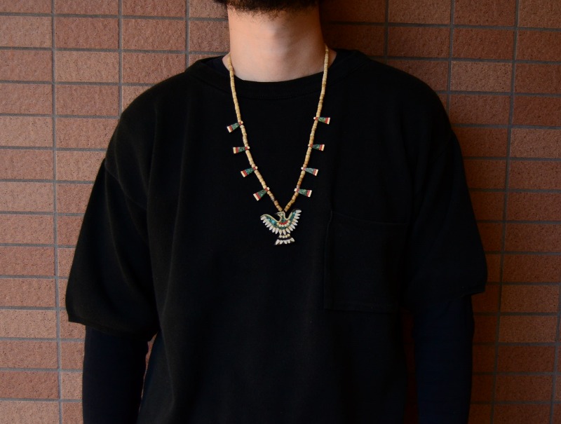 また、ナバホやホピ、ズニのジュエリーとも相性が良く、スタイルのアクセントとして効果的なネックレスです。
