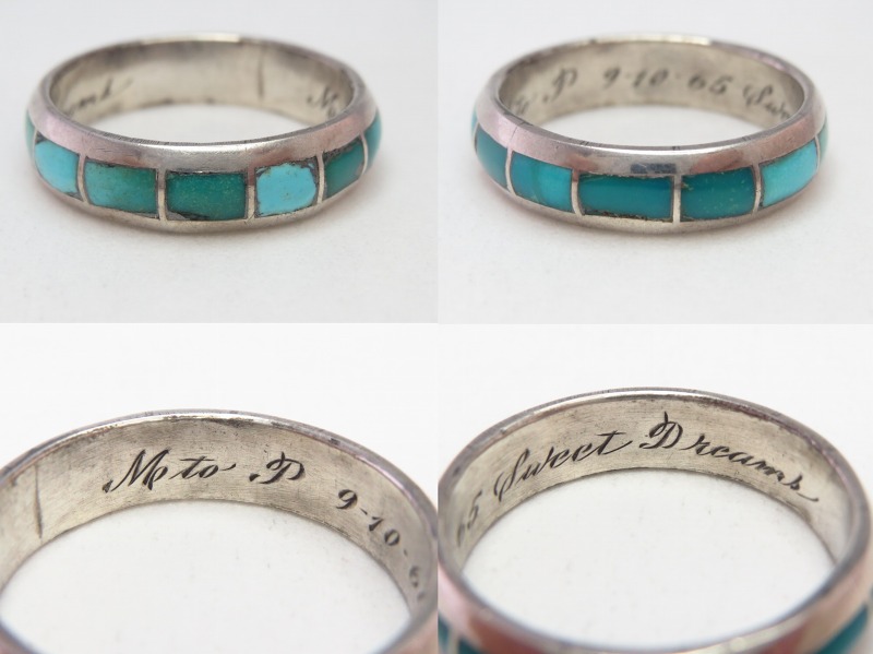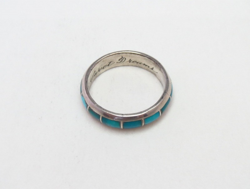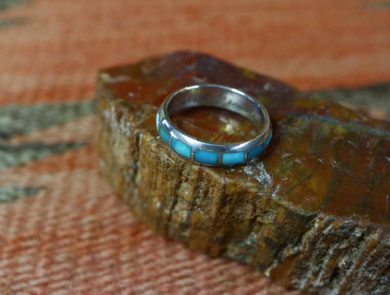 【ZUNI】ズ二のビンテージジュエリー、ズニジュエリーの伝統的な技術であるターコイズインレイによって構成された作品で、非常にクリーンでビンテージ作品ながら現代的な印象に仕上げられた比較的大きいサイズ(24.5号程度)のアンティーク/ビンテージリングです。