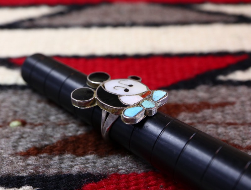 【ZUNI】ズニのビンテージジュエリー、ミッキーマウスをモチーフにしており、ズニのキャラクターモチーフ作品の中でもとてもキュートなピース。キャッチーなアイテムながら全て手作業による細かなインレイ技法で構成されたビンテージリングです。