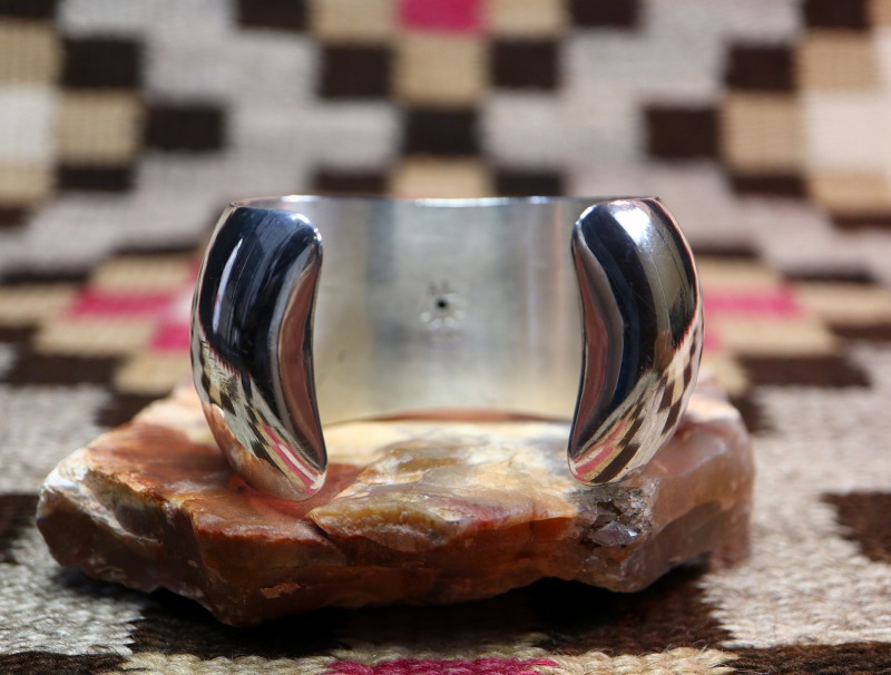 【NAVAJO】ナバホのシルバースミスによる作品で、ぽってりとした独特なフォルムに造形された美しいピース。手首のアクセントとなるボリューム感とワイドな幅を持った作品で、女性向けサイズのバングルです。