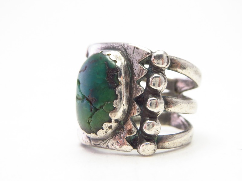 さらに、フェイスとシャンクとの間にはレインドロップとも呼ばれるシルバーボールが羅列され、ナバホジュエリーの伝統的でオーセンティックな造形スタイルを持ったリングとなっています。