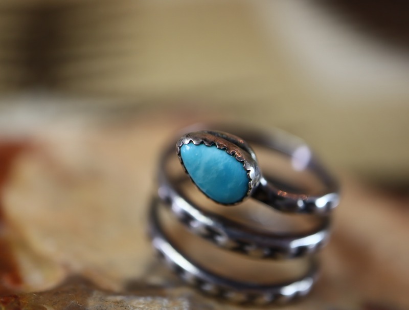 マウントされた石は、澄んだ水色の綺麗なターコイズで、ツーリストジュエリーでありながら高い質を持っています。またそれも、当時からターコイズ自体の流通にも携わっていた有力トレーディングポストMaisel's Indian Trading Postらしい特徴となっています。