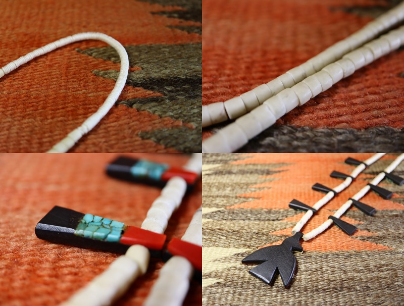 とぼけた表情がとてもキュートなサンダーバードがメインに構成されたポップでキャッチーな印象と、伝統工芸品としてのエスニシティでナチュラルな表情を併せ持ち、アンティークアートピース・ウェアラブルアーツとしても評価されるコレクタブルで貴重な作品の一つとなっています。