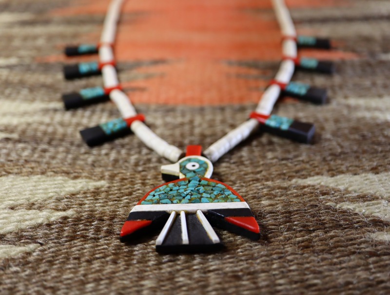 【Kewa】キワ/【Santo Domingo】サントドミンゴのアンティーク作品、キッチュで可愛い印象のサンダーバードとグラフィカルなカラーリングが特徴的なアンティーク/ビンテージネックレス。 通称【Battery Bird】バッテリーバードや【Depression Necklaces】デプレッションネックレス/大恐慌のネックレスとも呼ばれる同部族の伝統的な作品です。