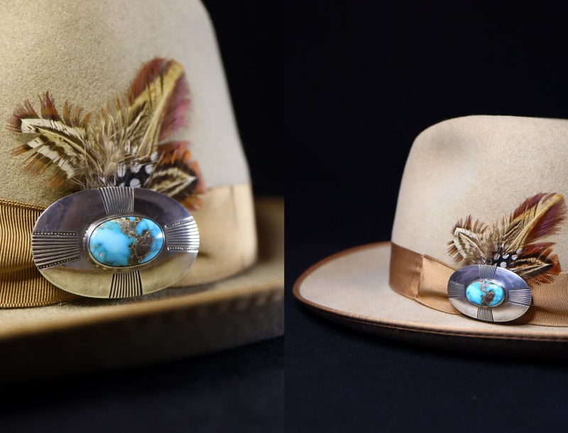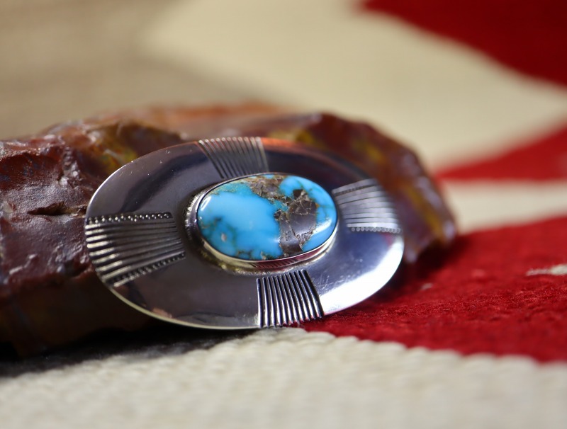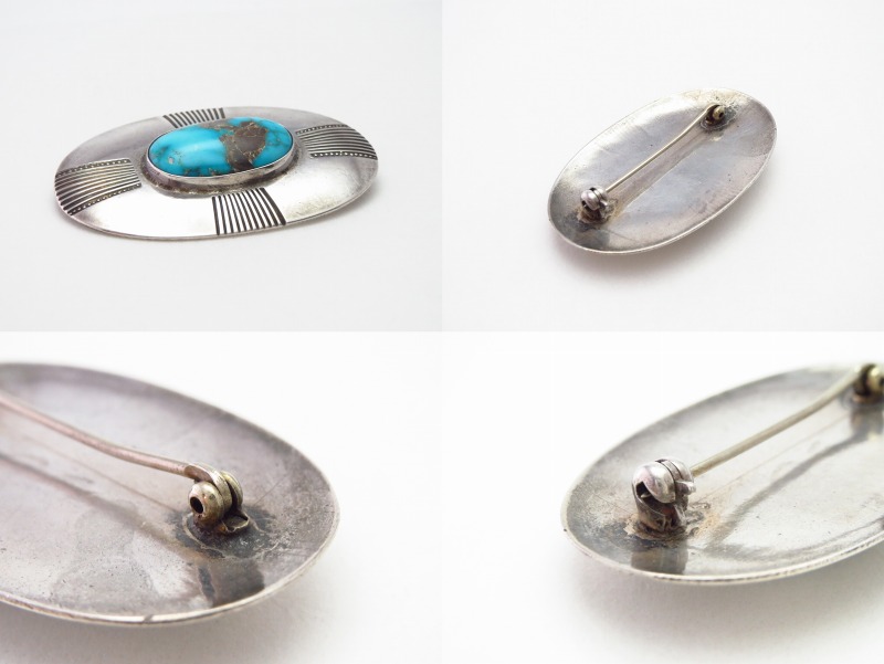 伝統的な製法/技術が踏襲された丁寧で美しいシルバーワークとクラシックでセンスの良いデザインと造形美が堪能できるピンブローチ。さらに、無添加ナチュラルなターコイズによってジュエリーとしての品位が与えられており、伝統工芸品として作られたシルバージュエリーをウェアラブルアートとしても評価できる作品へ昇華させているようです。