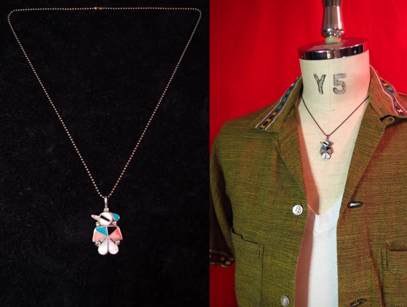 こちらの様なズニのジュエリーは1930年代以降、現在まで多く作られましたが、現在ではインレイ技法で作られた多くのジュエリーがキャストによる量産品(石をはめ込むだけ)となってしまいましたが、こちらはシルバー部分を含めてすべてがハンドメイドで成形されています。