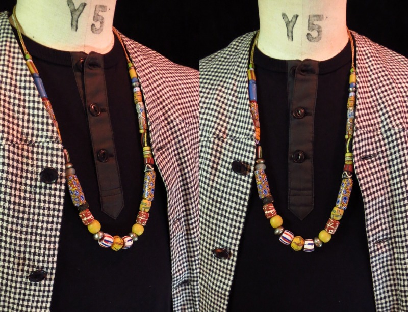 また、1960年代後半になるとヒッピーたちの手により、フォークアートの一つとして沢山のネックレスが作られました。そのため、世界的には珍しい多数のトレードビーズがミックスされたネックレスがアメリカでは時々見つかります。
