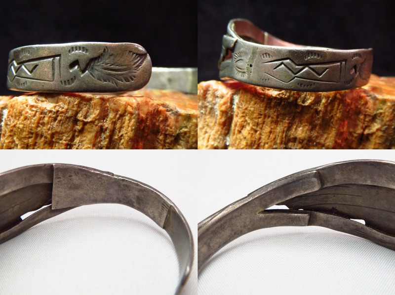さらに、驚くことにターミナルには【ZUNI】ズ二族の大変偉大な作家【Dan Simplicio】ダン・シンプリシオ(1917-1969) の作品に見られるリーフモチーフのスタンプが施されたアンティーク/ビンテージバングルです。