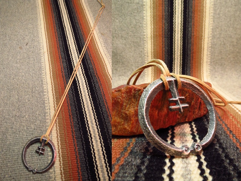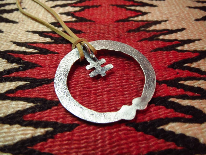 【NAVAJO】ナバホの作家【Chris Billie】クリス・ビリー作、武骨な表情を見せるナジャは、トゥーファキャストで成形され、ドラゴンフライクロスが組み合わされたトップのネックレスです。