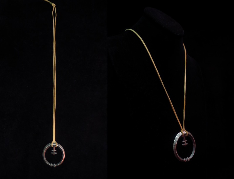 レザーレースは 長さが自由に変更可能で最大で90㎝程度になり、他のネックレスと重ねた使い方にも向いた作品。長さの調整幅が大きいので、性別を問わずお使いいただけるネックレスです。