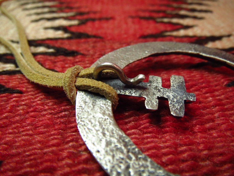 またこちらの作品では、ラウンド型に近いナジャのシェイプを再現してもらっており、1800年代末~に見られるような先端に開きがない造形です。それらのディテールにより、ナバホのとても古い作品を想起させ、アイウェアがフッキングできるようになっています。