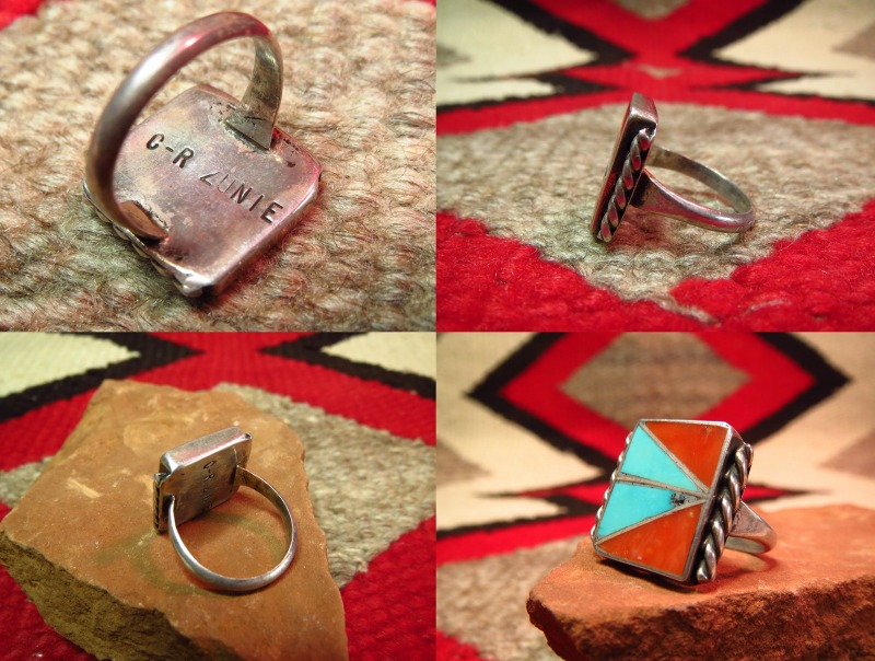 ズニのインレイを使った作品はナバホのシルバー技術に次ぐ長い伝統のある技術で、1920年代以降にはナバホのシルバースミスとの共作なども作られてます。 現在ではインレイ技法で作られた多くのジュエリーがキャストによる量産品(石をはめ込むだけ)となってしまいましたが、こちらはすべてがハンドメイドで成形されています。