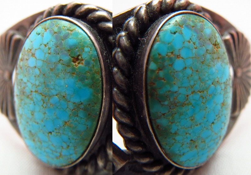 これは当時のグレーディングが曖昧な基準だったために見られるもので、もちろん無添加ナチュラルであり、オールドでありながらいまだ美しさを保った素晴らしいターコイズです。