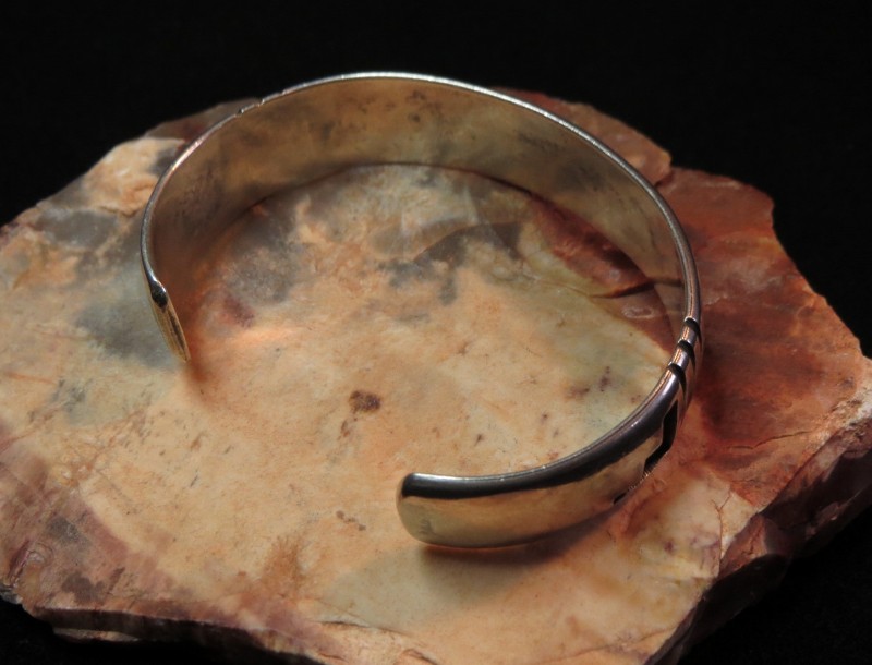 高度な彫金技術により仕上げられ、大変美しくクリーンでアートピースとしても素晴らしい存在感を持ったデザイン/造形のバングルです。 オーバーレイ技術黎明期でありながら、すでに高い完成度を誇るVictor Coochwytewaによる、何気ないデザイン/造形ながら大変なスペシャリティーを持ったハイエンドなピースであり、史料価値も非常に高い作品です。