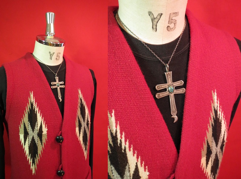 スタイルとしては1890年代~1910年代のナバホジュエリー創生期の作品を踏襲していますが、おそらく1940年代~1960年代頭頃までに作られた作品と思われます。