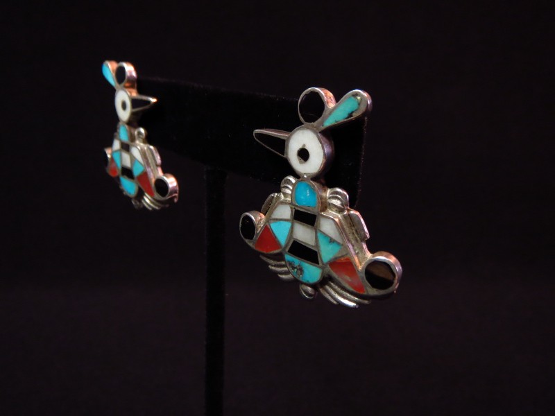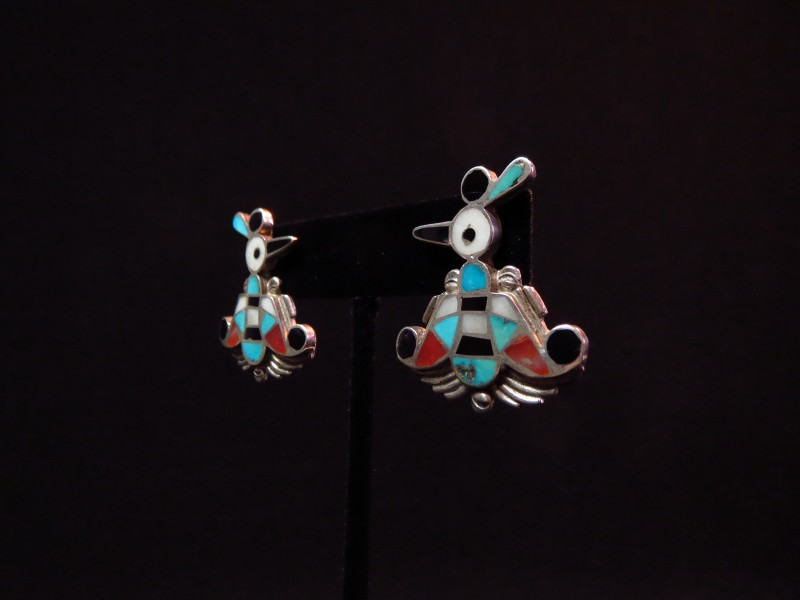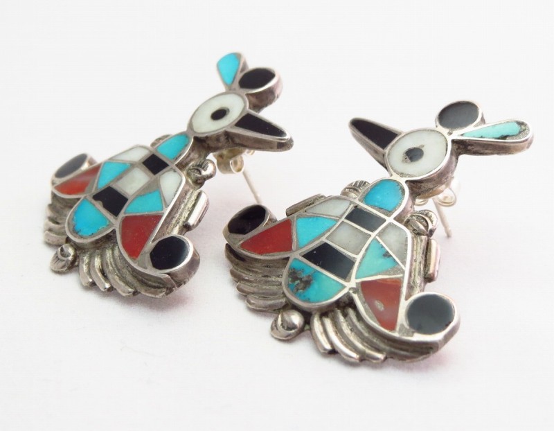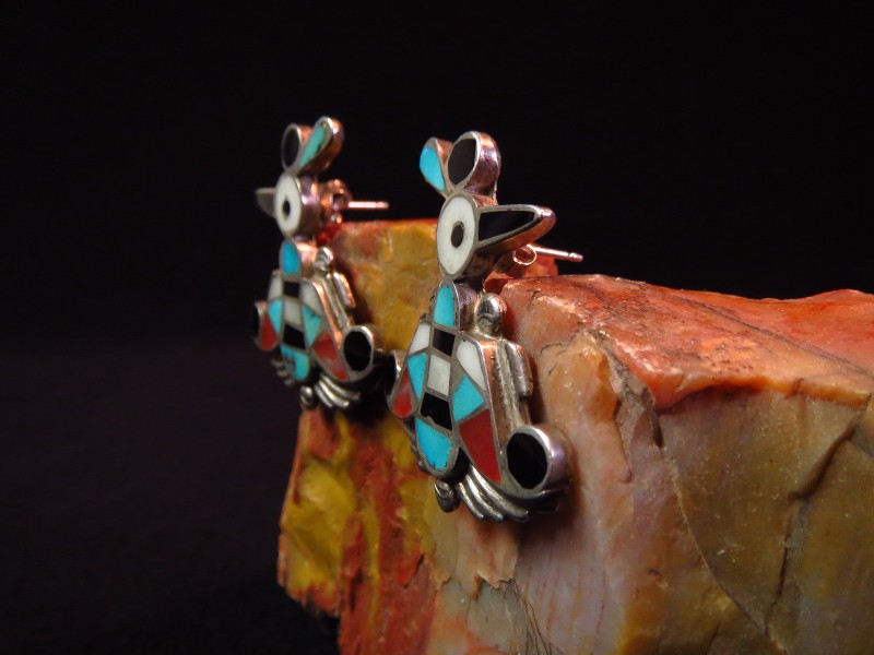 【ZUNI】ズ二の偉大な作家【Dan Simplicio】ダン・シンプリシオ(1917-1969) の作品と思われる、サンダーバード/ホピバードモチーフのピース。ズニらしい多彩な材料をチャンネルインレイすることで生み出される美しい色彩が特徴的なビンテージピアスです。