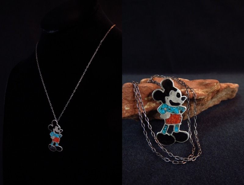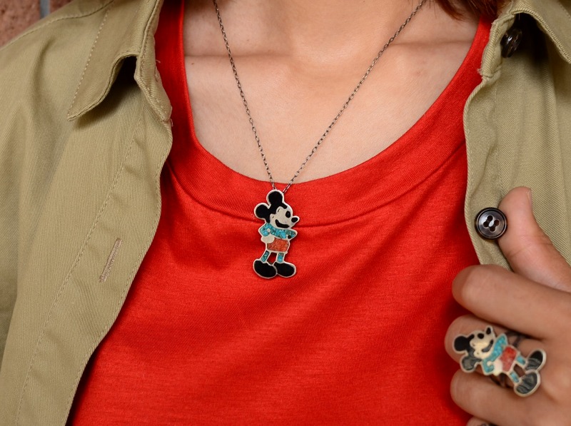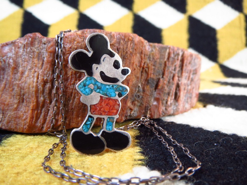 こちらの様なアイコニックなキャラクターモチーフのジュエリーは【Carol Kee】(インレイを使う珍しいナバホ出身作家)や【Veronica Poblano】等が有名で、ズニの作家によって多くの作品が制作されましたが、ディズニーの指摘などにより、1970年代後半以降はあまり制作されなくなりました。