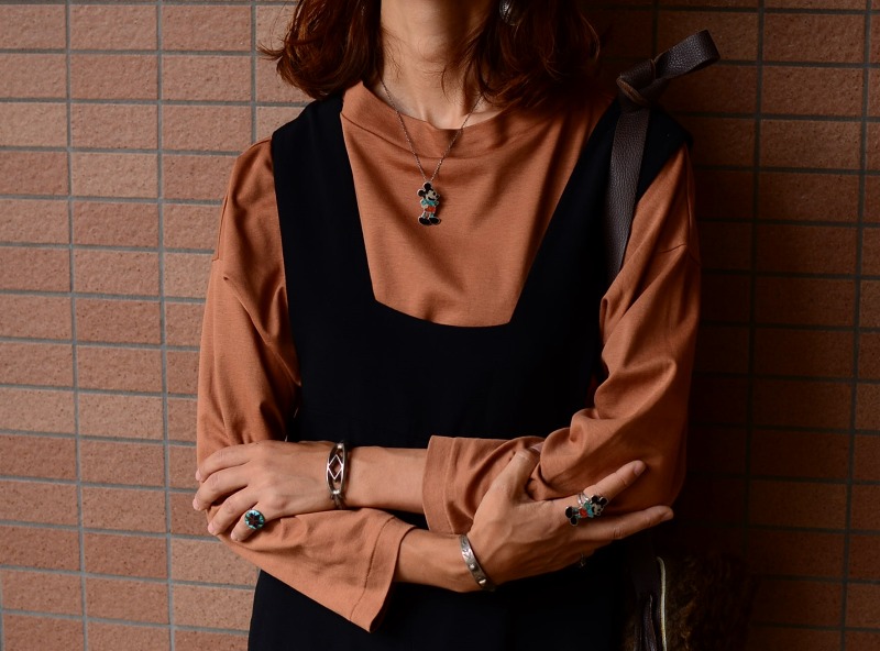 可愛いミッキーモチーフが、当時のファニーな感性とインディアンジュエリー特有の感覚によって、味わい深く遊び心あふれるアイテムに仕上げられています。 その味わいやアイコニックなルックスは、あくまでも大人向けのアイテムではないかと思われ、スタイルにアクセントと奥行きをもたらすことが出来るビンテージリング。
