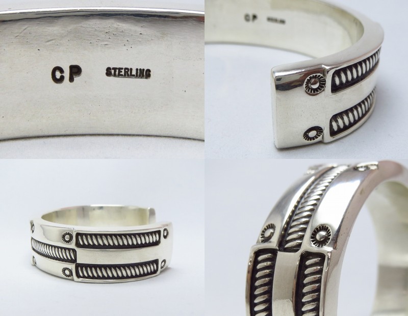 【Clendon Pete】クレンドン・ピートは、1977年生まれでナバホのジュエラーとしてはまだまだ若手と言われますが、そのキャリアは休止期間も含めるとすでに30年に至り、年齢にそぐわない成熟した技術と経験を身に付けたシルバースミスです。師を持たず、ほとんど独学でシルバーワークを学びましたが、従弟である【Wilson Jim】ウィルソン・ジム(1949-)と【Thomas Jim】トーマス・ジム(1955-)の兄弟や、元義弟である【Norman Bia】ノーマン・バイア(1972-)の影響を受けており、現在でもジュエリー制作の技術や製法について相談することがあるそうです。