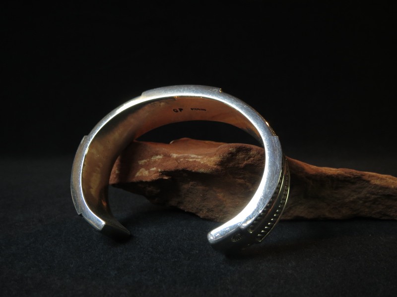こちらは、ナバホのヒストリックな作品を再現したバングルですが、シンプルで現代的な印象になっており、Clendon Peteらしいハイポリッシュの仕上げ工程によって独特の上質感やジュエリーとしての品格も備わっています。