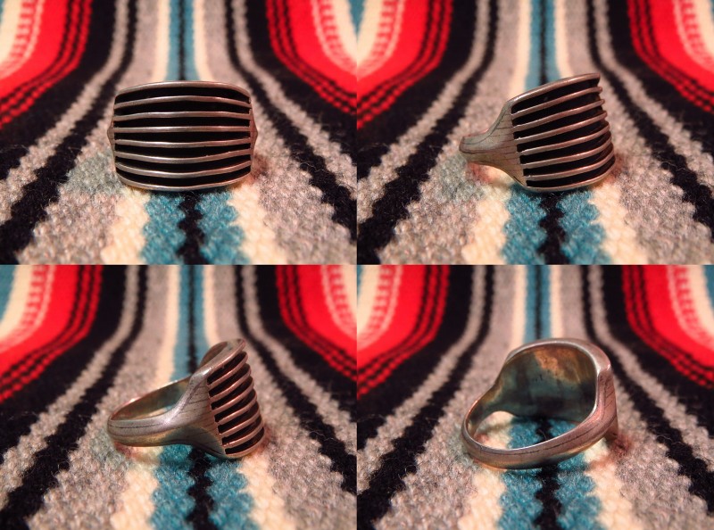 【NAVAJO】ナバホの巨匠【Leroy/Turquoise Thomas】レロイ・トーマス(1946-)の作品で、ナバホジュエリー初期からみられるスタイルの一つであり、1960年代前後に【Johnny Mike Begay】ジョニー・マイク・ビゲイ(19??-1976)が完成させたとされている造形スタイルのビンテージリングです。