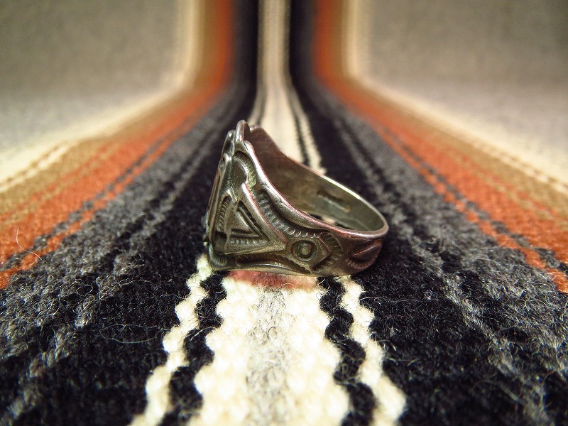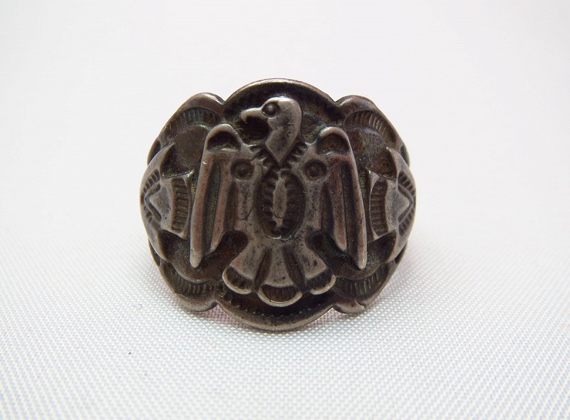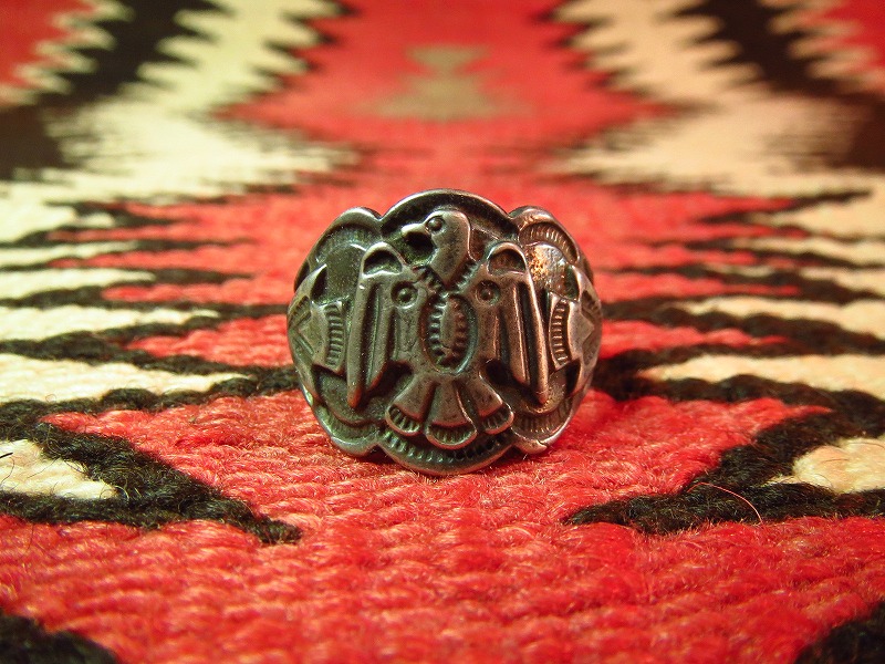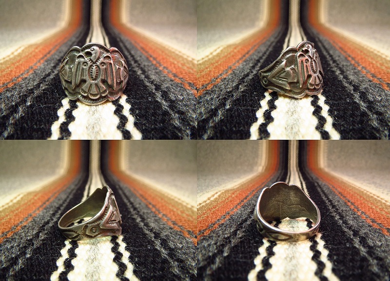 フレッド・ハービースタイルの1930年代~1950年代製、サンダーバードやアローヘッドがパッチワークされたポップな印象のリングです。