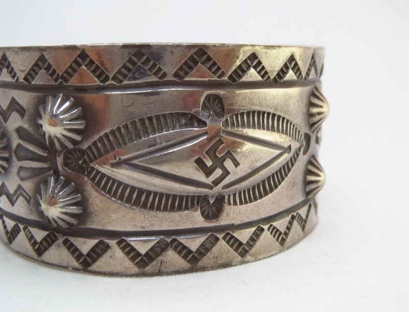 当時の新聞記事にも残っていますが、インディアンたちにも卍が入った作品の廃棄が求められ、政府機関によって回収されたりしたようです。 その後、大戦中にも多くが廃棄されてしまった歴史があり、現存しているものは大変貴重となりました。 こちらはそのような受難を乗り越えて現存しているものです。