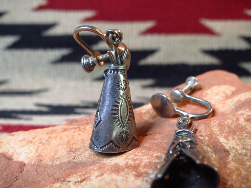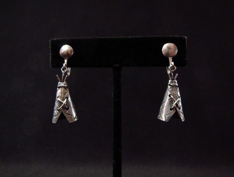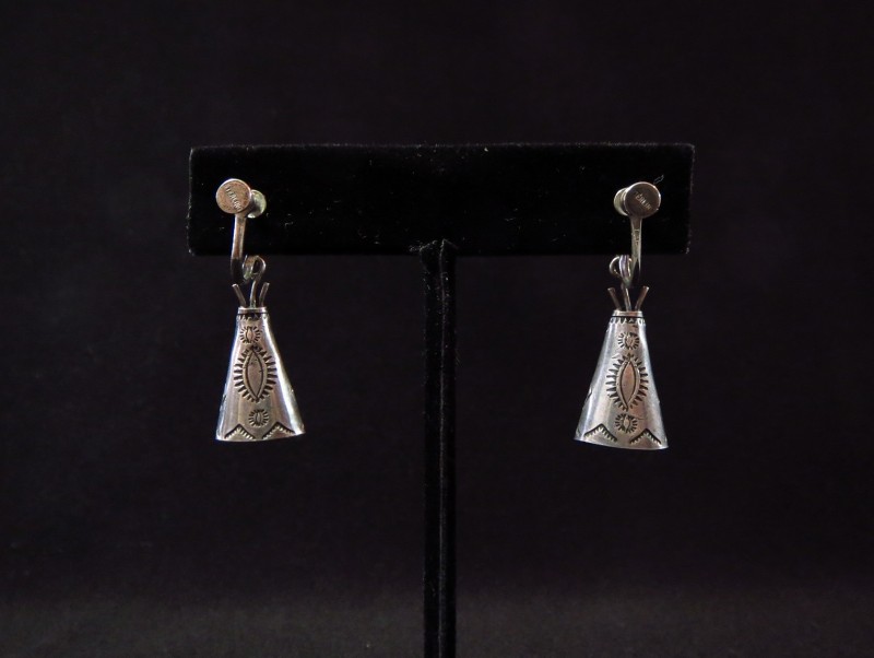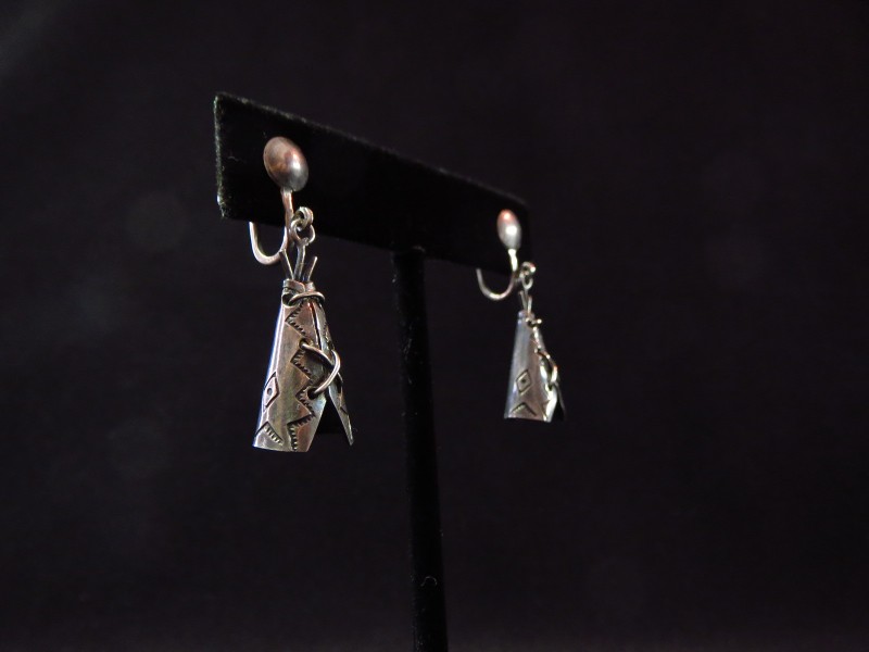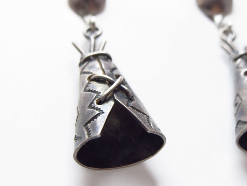 【NAVAJO】ナバホか【PUEBLO】プエブロのビンテージジュエリーで、【Tipi】ティピー型にデザインされたチャームが可愛い印象のアンティーク/ビンテージイヤリングです。