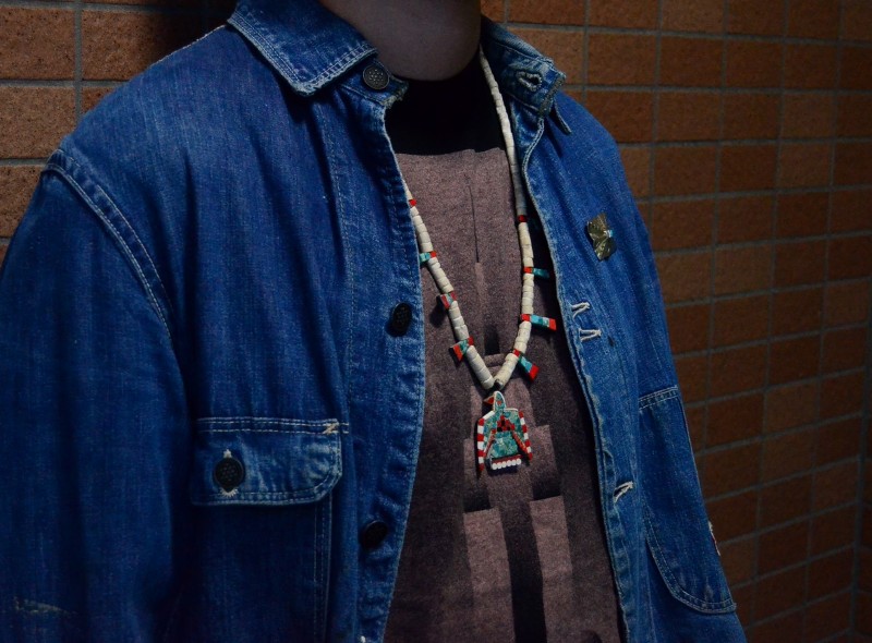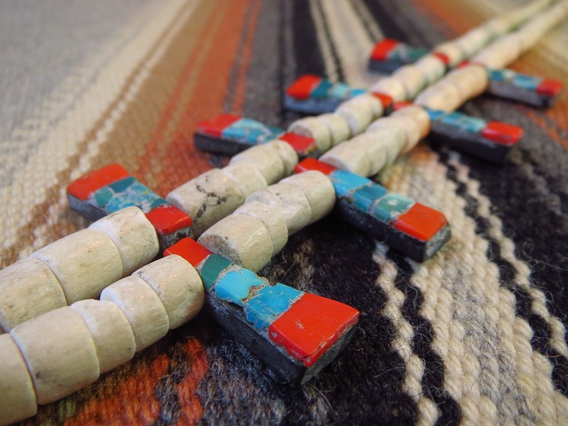 アンティークとサントドミンゴ/キワによる独特の価値観と味わいを感じることが出来るネックレスです。作品単独では少し派手な印象ですが、多くのスタイルに馴染みやすく性別を問わずお使いいただけますし、ナバホやホピ、ズニのジュエリーとも相性の良い作品です。また、大変古い年代の伝統的な作品ですがポップでキャッチーな印象も作ることができ、スタイルのアクセントとして効果的なネックレスです。