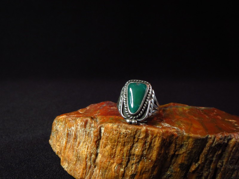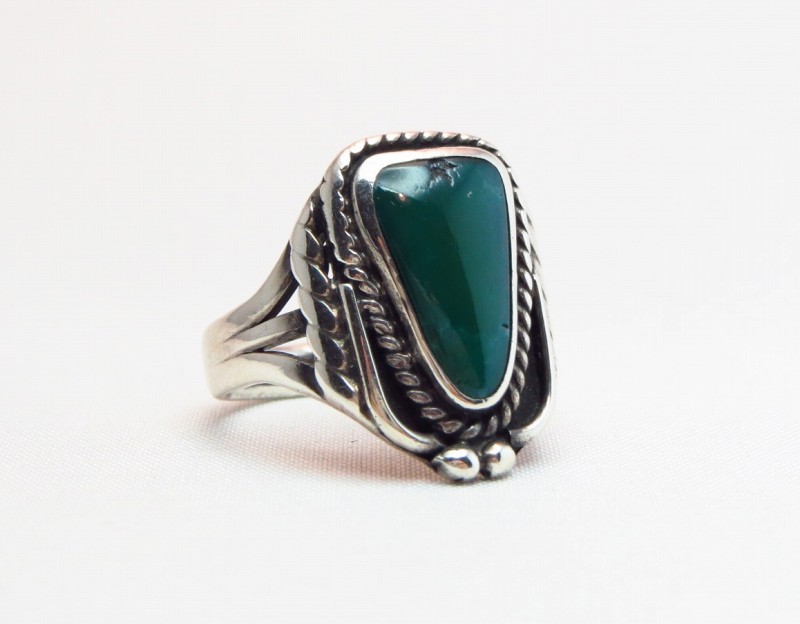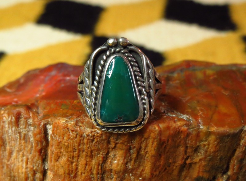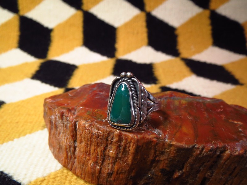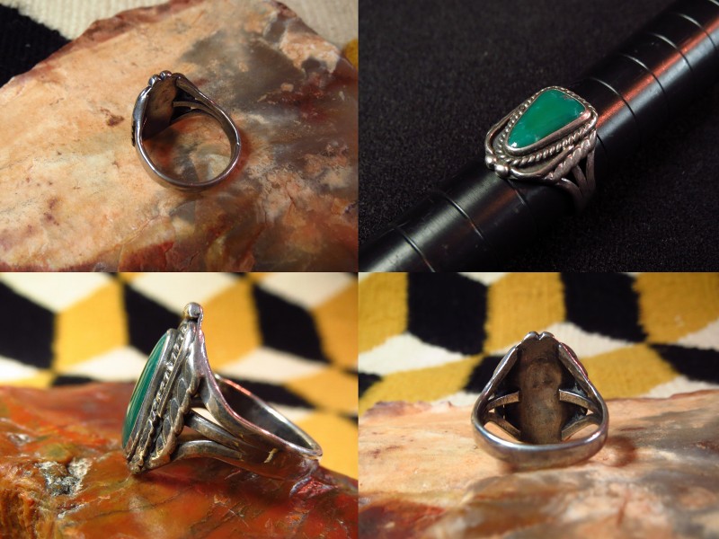 【NAVAJO】ナバホのアンティークジュエリー、伝統的な技術の秀逸なシルバーワークにとても美しいグリーンターコイズがセットされたアンティーク/ビンテージリングです。
