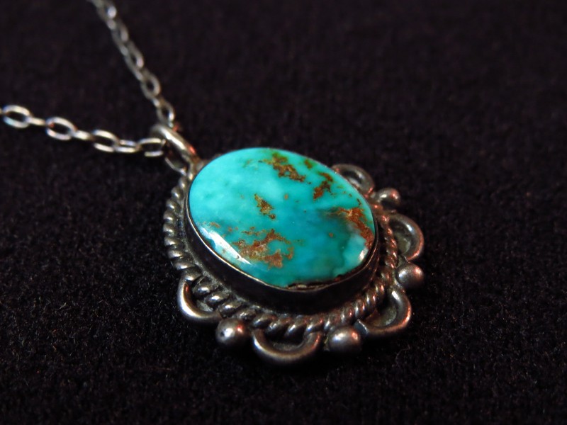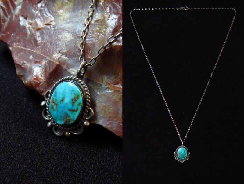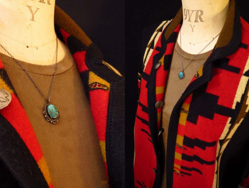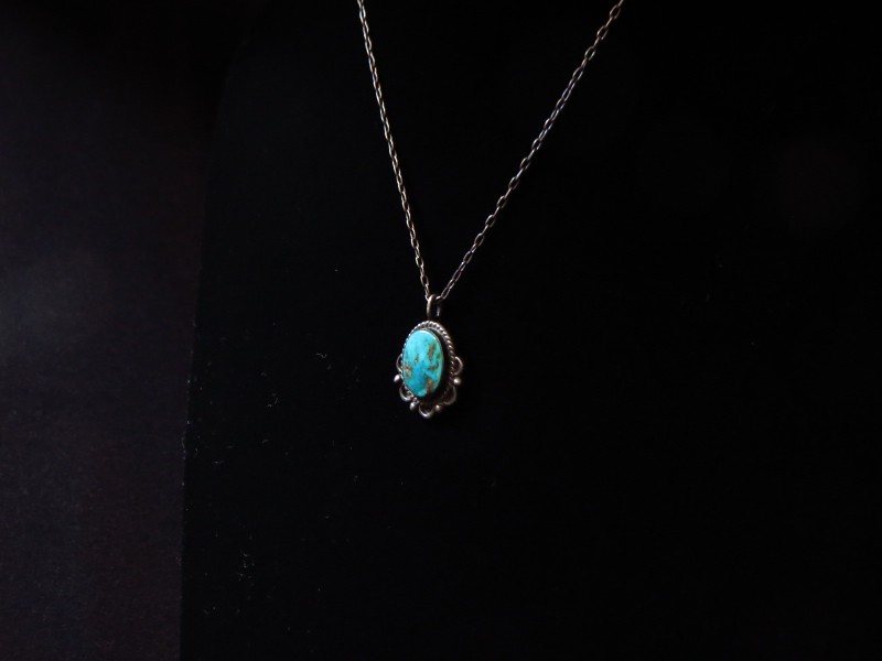 【NAVAJO】ナバホのビンテージジュエリー、とても美しいターコイズと細かなシルバーワークが特徴的な小さなトップのアンティーク/ビンテージネックレスです。