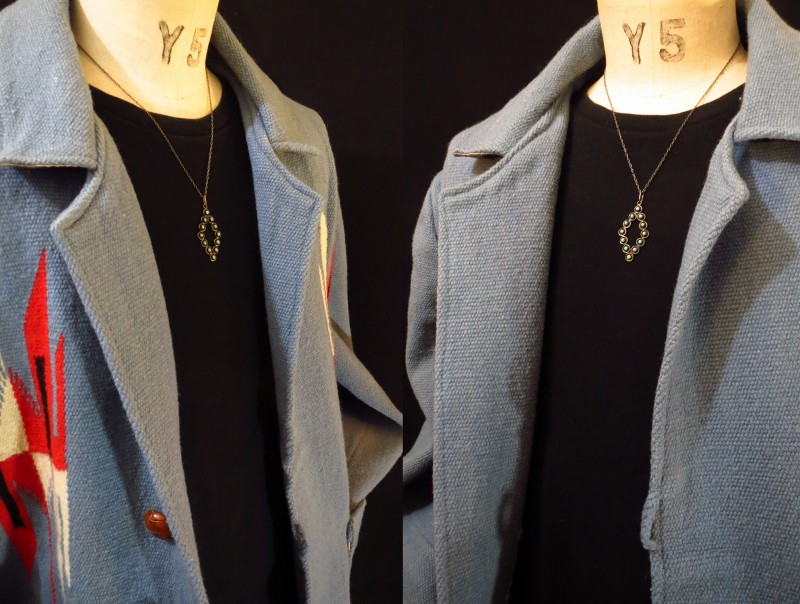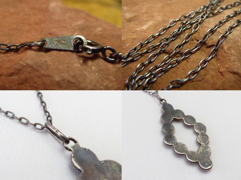 また、付属のシルバーチェーンは新しいものですが、独自にアンティーク加工を施しておりビンテージ作品によく馴染む表情になっております。