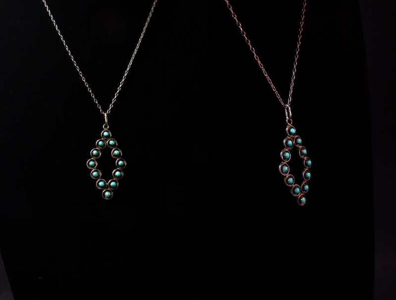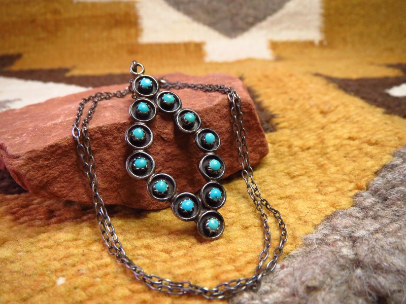 【ZUNI】ズニのビンテージジュエリー、ズニの伝統的な造形技術の一つである『Needle Point/ニードルポイント』と呼ばれる技法で構成されたダイヤモンドシェイプのトップが特徴的なビンテージネックレスです。