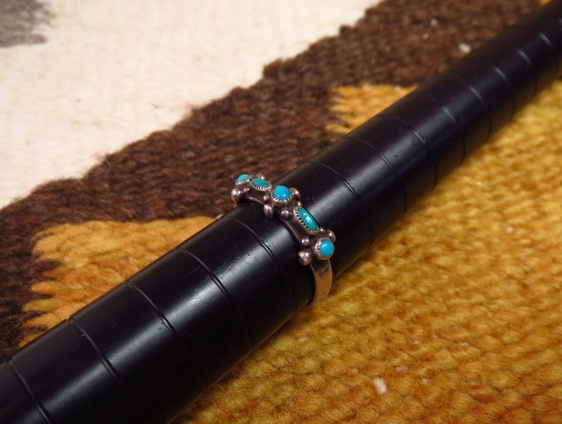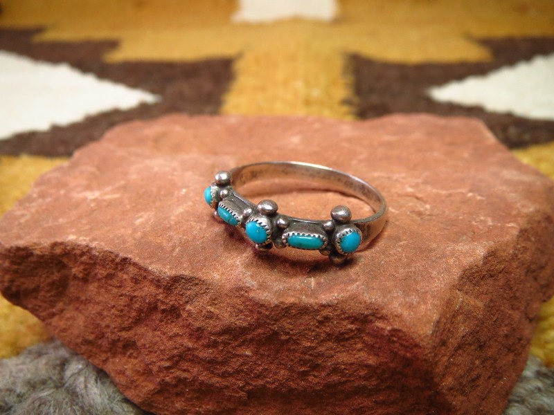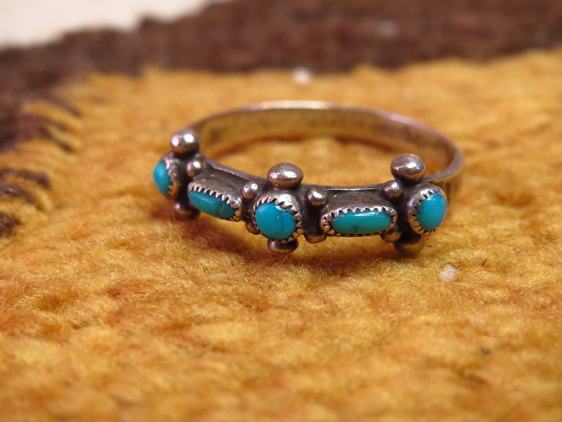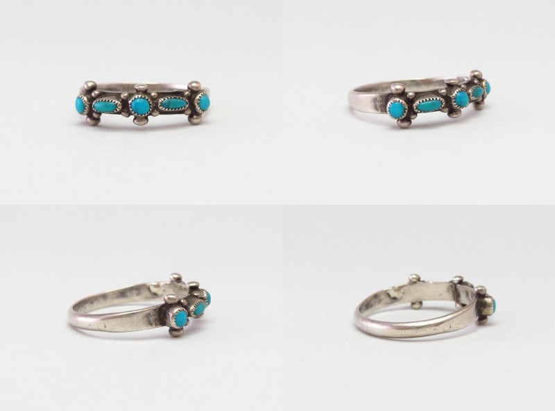 【ZUNI】ズニのビンテージジュエリー、ズニの伝統的な造形技術の一つである『Needle Point/ニードルポイント』と呼ばれる技法で小さなターコイズが羅列された作品。繊細なシルバーワークが印象的なアンティーク/ビンテージリングです。
