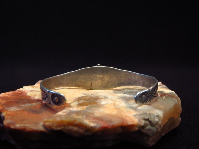 1940年代~1950年代製で、ホールマーク(サイン)等の刻印が見られず、作者や制作した工房を特定することはできません。しかしながら造形/デザインやシルバーワークのディテール等から、NAVAJO/ナバホ・PUEBLO/プエブロの職人が多く所属した、Fred Harvey Styleを代表する工房の一つである【Maisel's Indian Trading Post】製と推測されるピースです。