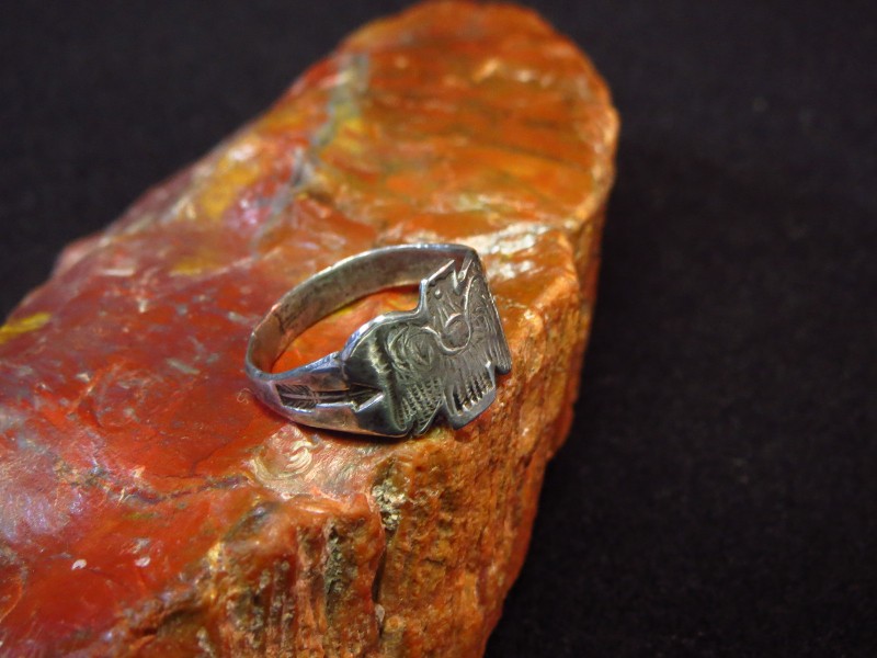 【NAVAJO】ナバホか【PUEBLO】プエブロの職人による【Tourist Jewelry】ツーリストジュエリーとも呼ばれる、1910年代~1950年代のサウスウエスト観光産業の隆盛に伴って観光客向けに制作されたスーベニアアイテムの一つですが、その中でも初期のものと思われるプリミティブで渋い印象を持った作品。独特なサンダーバードのスタンプが特徴的なアンティーク/ビンテージリングです。