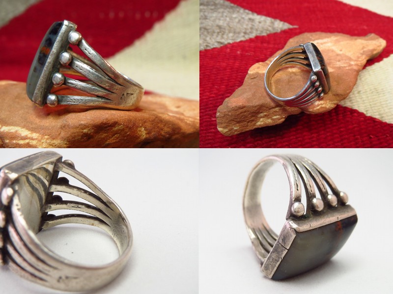 そして、それら質の高いシルバーワークやスクエアカットの石、ナバホの伝統的でオーセンティックな造形/デザインは、クラシックでありアンティークインディアンジュエリー特有の魅力も兼ねそろえたリングです。