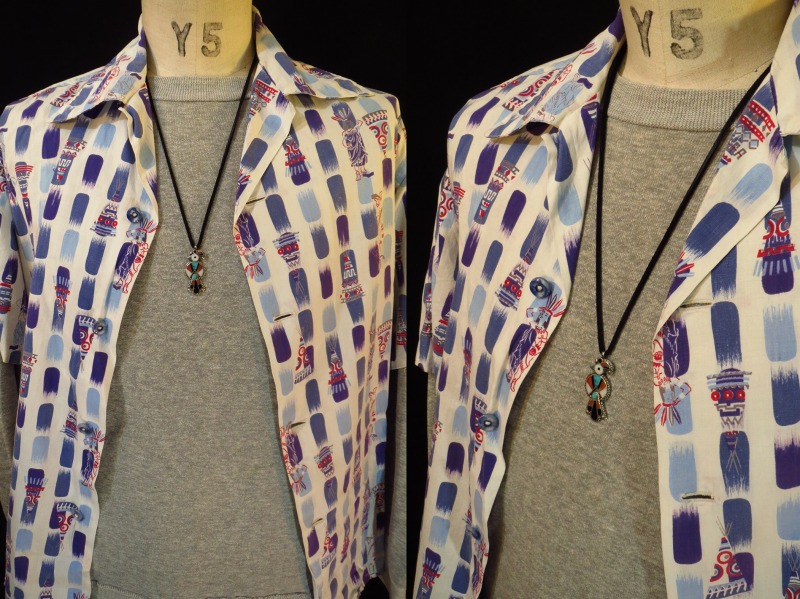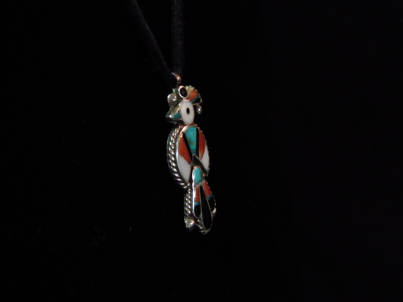 こちらの作品もキャッチーで可愛い印象のサンダーバードが印象的で、ズニジュエリー特有のマルチカラーでありながら、それぞれの素材はビンテージ特有の渋く落ち着いた色調の為、ナチュラルでいろいろな素材になじみの良い質感はさり気なくスタイリングしやすいアイテムです。